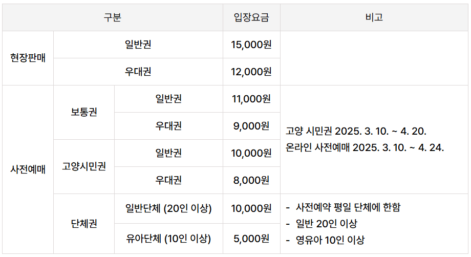사전예매 고양시민권 판매기간    2025. 3. 10. ~ 4.20.